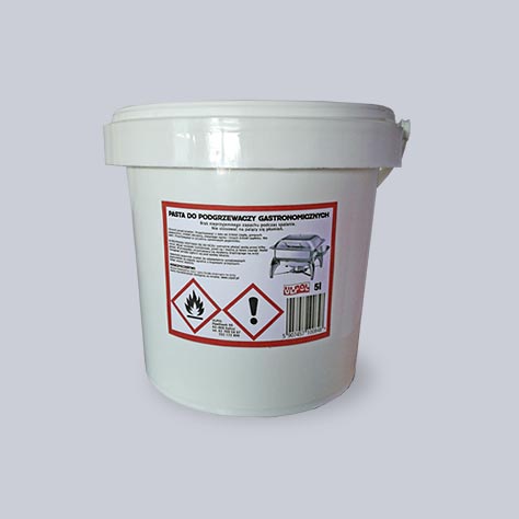 Profesjonalna pasta do podgrzewaczy w wiaderku 5L, stworzona z wysokiej jakości etanolu. Gwarantuje bezzapachowe i nietoksyczne podgrzewanie potraw, idealna do restauracji, bufetów hotelowych i cateringu.